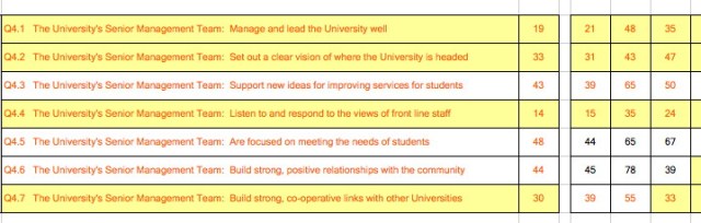 Only 43% – less than half – of senior management agree to any extent that they themselves set out a clear vision of where the university is headed.