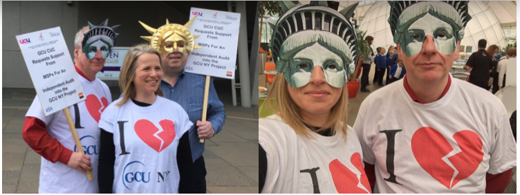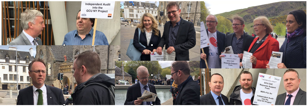 GCU staff and students brought their campaign for an independent investigation of the events surrounding the university’s New York hub, to Holyrood MSPs today.