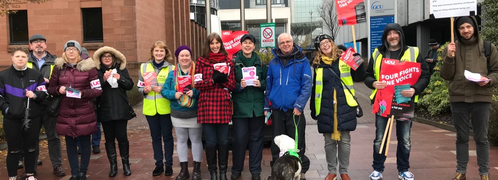 A customised leaflet for GCU students was handed out by pickets at all six entrances and was well received, with some students taking in leaflets to give out in the refectory, and members of EIS, Unison and Unite also taking in some of our materials.