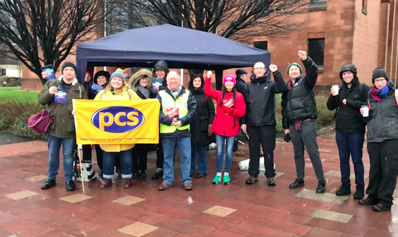 The local Public Service Union PCS were a welcome addition to today’s picket line with Lindsay Morgan and Magnus Hughson bringing along their local banner.