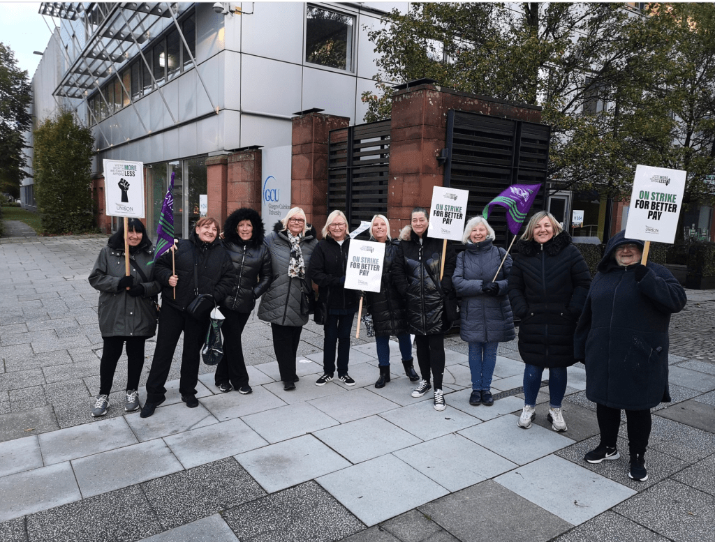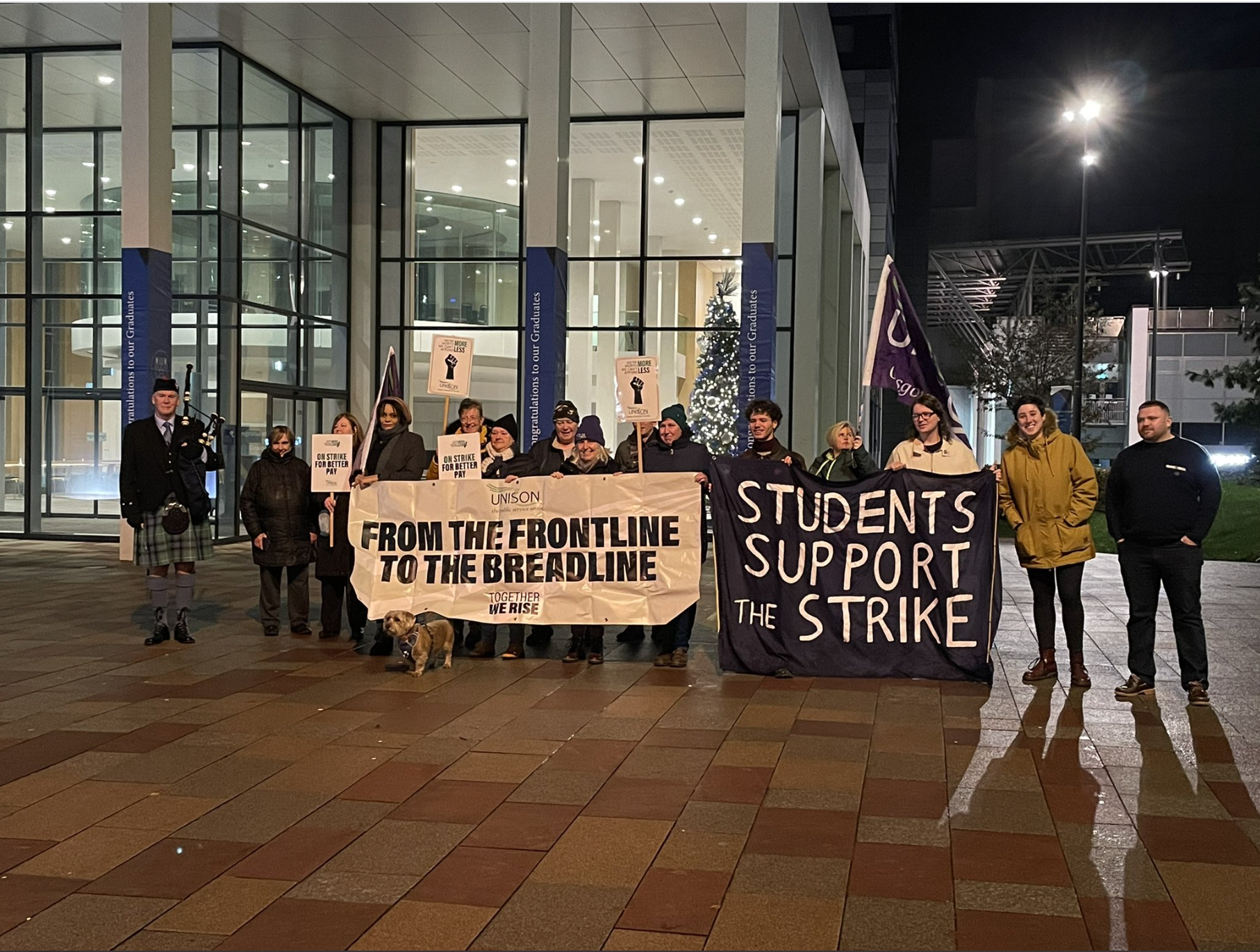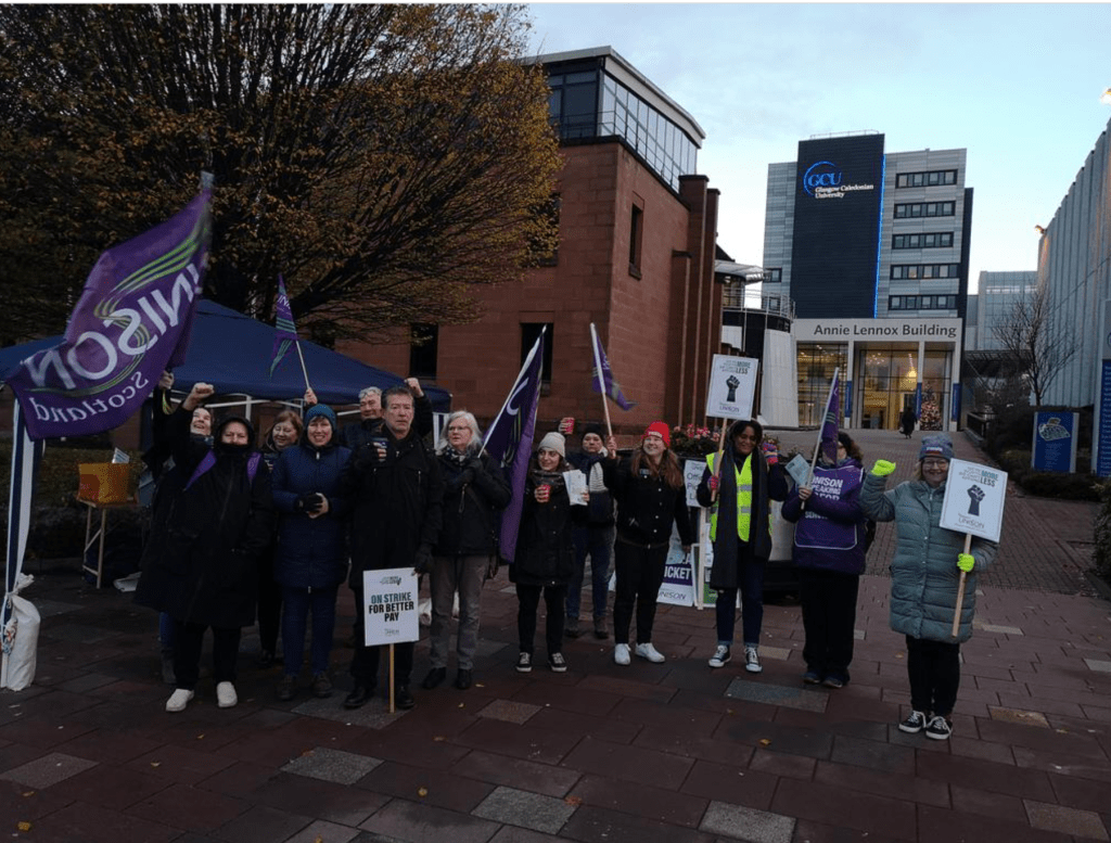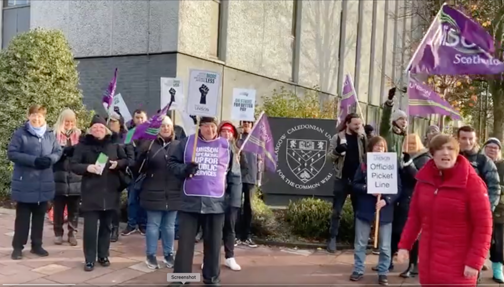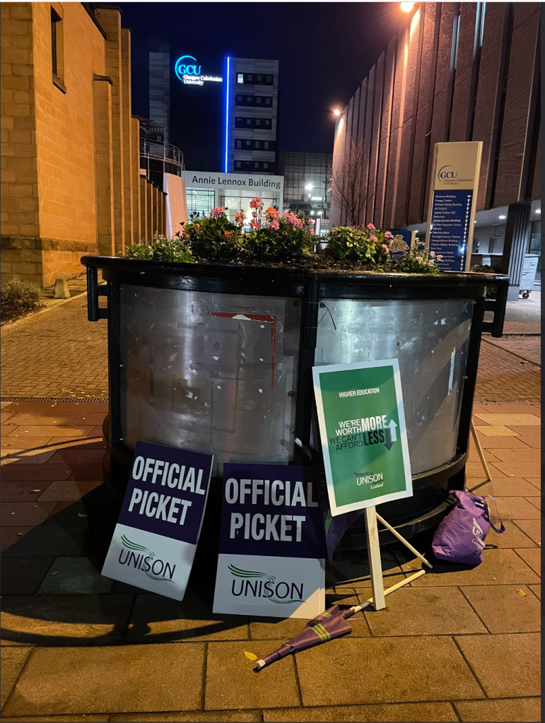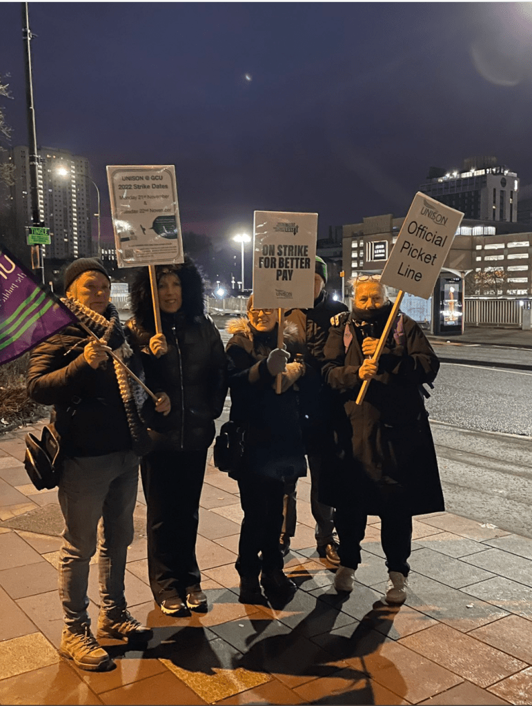 Some of the photos from the fantastic two days of picketing carried out by Unison members of staff at GCU which was warmly supported by students – some of whom had even turned out for the launch of action at midnight on Sunday.