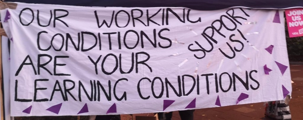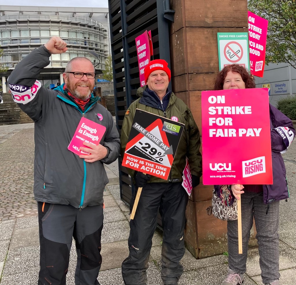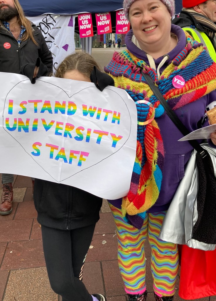 She said…..This has been an amazing turnout on the picket lines, and I want to say a special thanks to somer people – a special thanks to the students who have turned out on the picket line. You have no idea what a difference that makes to staff to know that the students are behind us…. It’s a useful tactic from management to try and divide and rule, telling us that we are letting our students down, so I cannot thank you enough. She also gave special thanks to our postgrad and PhD students who had also turned out today saying it’s great to see you out on the picket line and speaking to your fellow PhD students as well.
