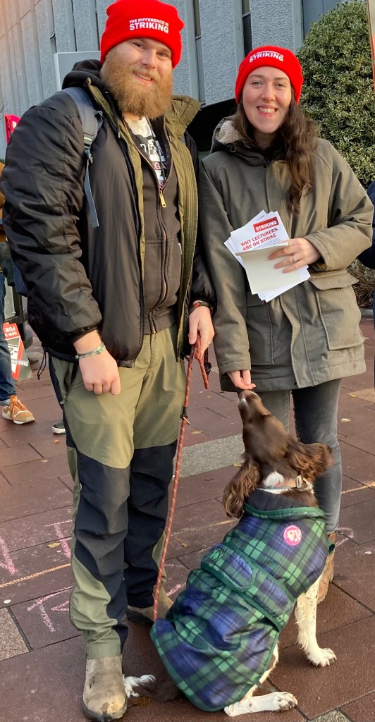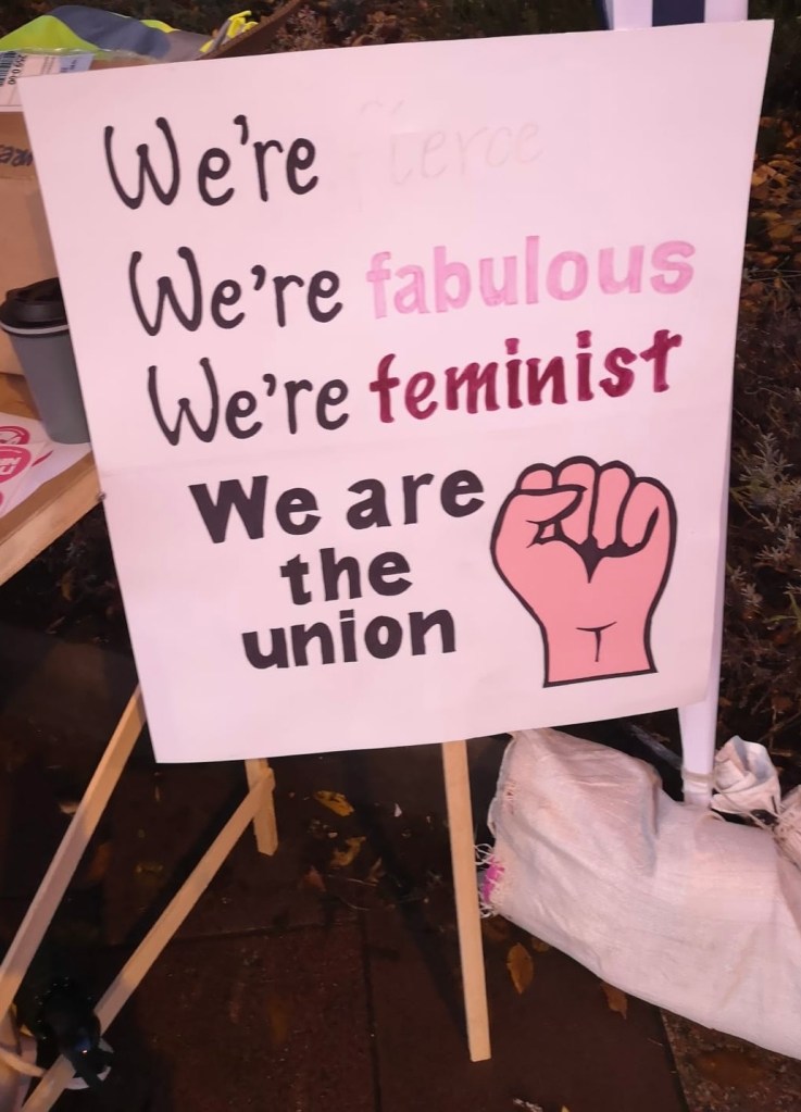 In a carnival atmosphere, where the rain stayed off, and passing cars, lorries, fire engines, and taxis honked their support, our sound system and Spotify (thanks Karen!) provided a great backdrop to the staff demand for better pay and conditions.