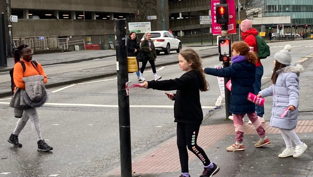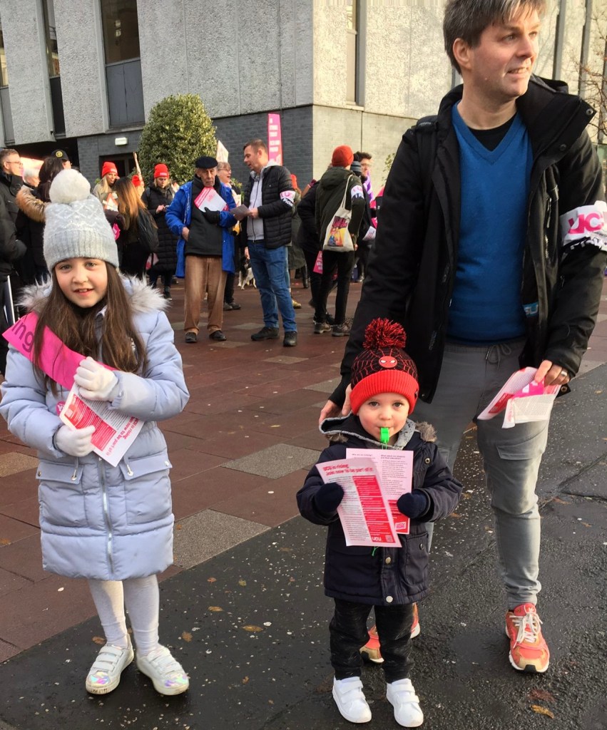 Quite a few parents had brought their school age kids since the schools were also on strike, and it is hard to remember a more enthusiastic group of leafleters for the cause.