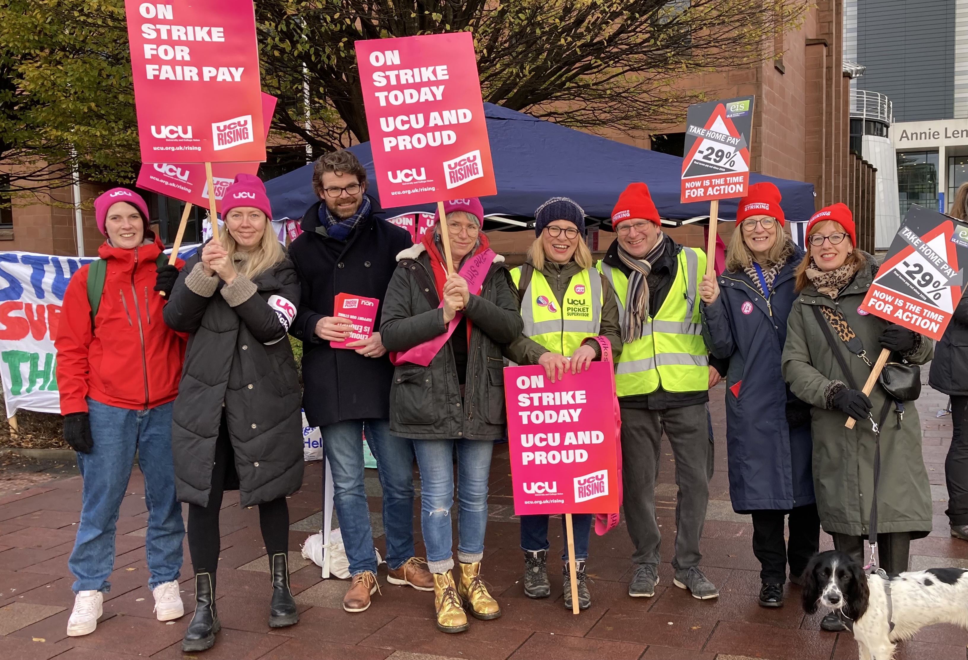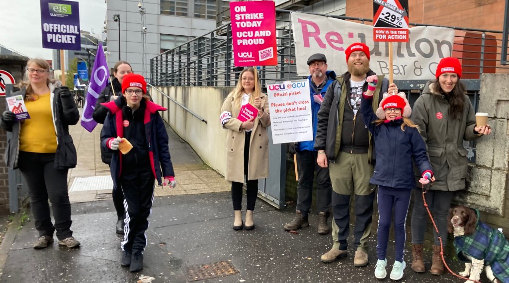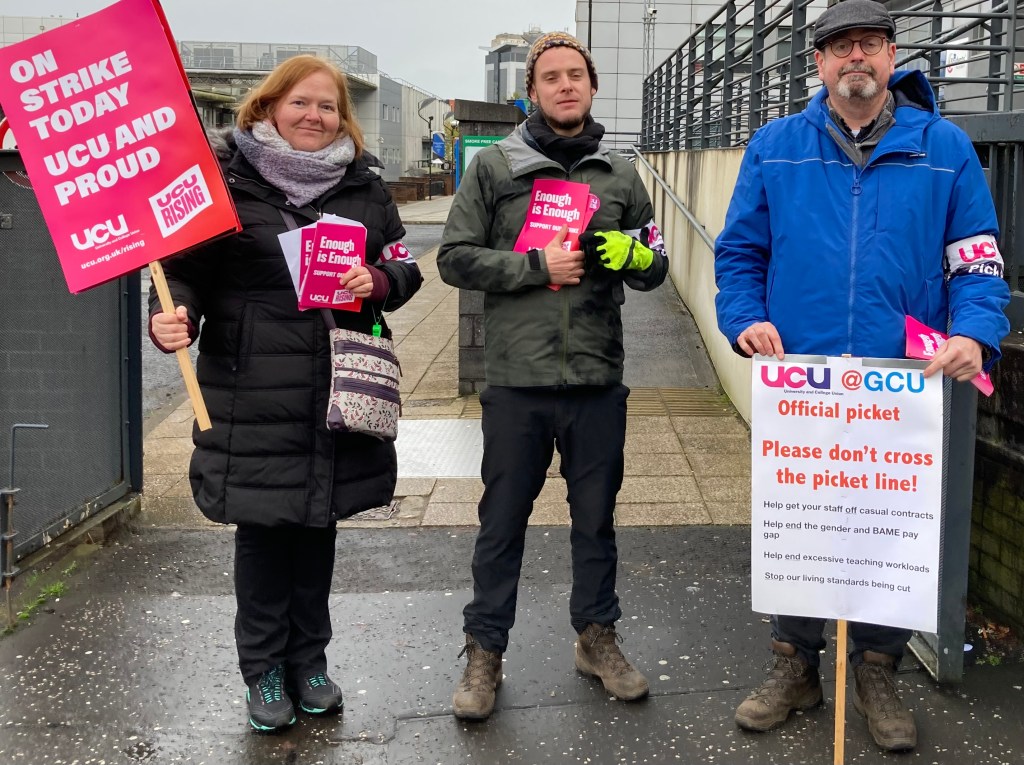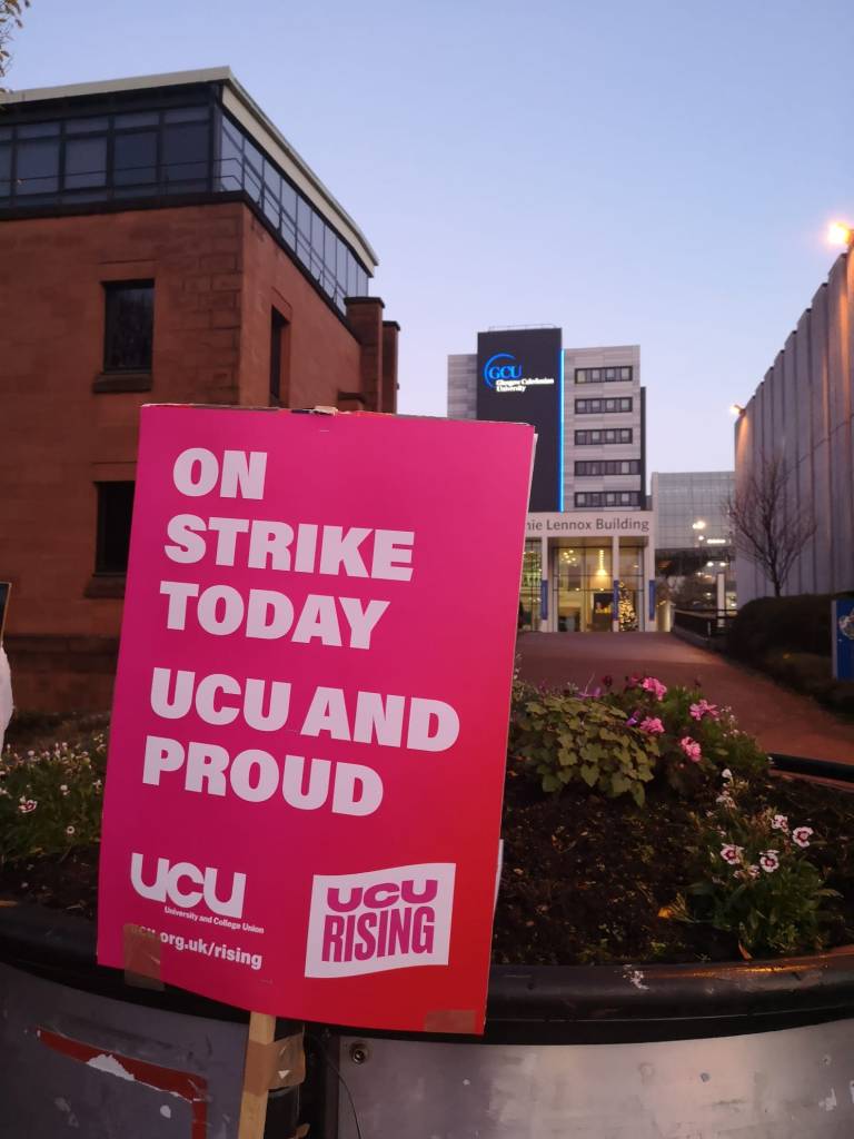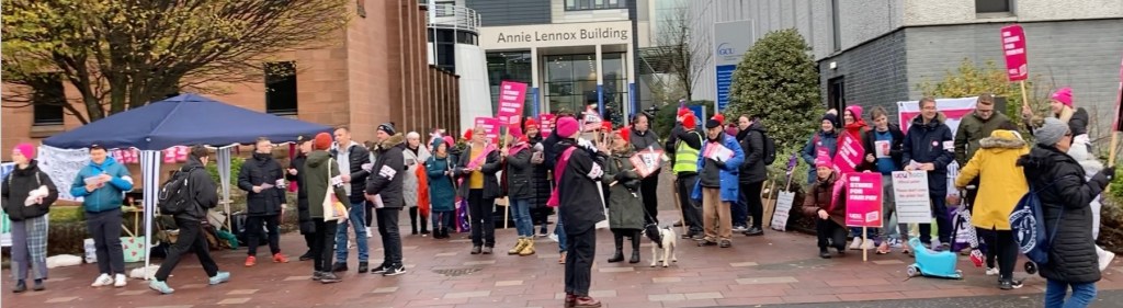 Building on from our colleagues in Unison on Monday and Tuesday, the combined forces of the UCU and EIS mounted what must be one of the biggest pickets seen at Glasgow Caledonian University in the last ten years.