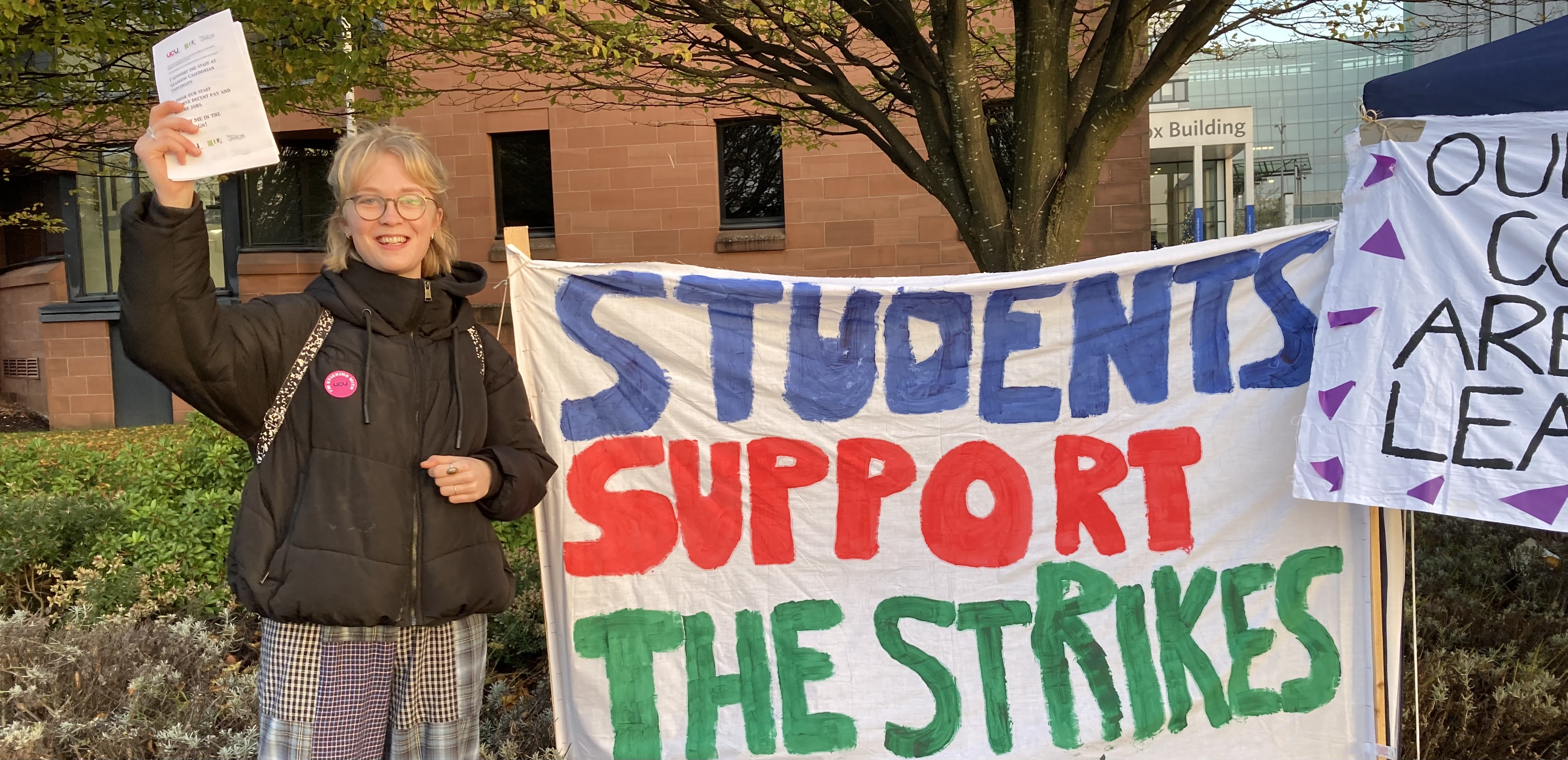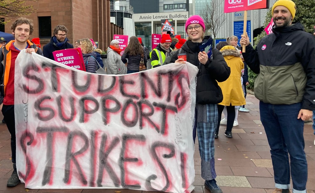 Catriona Mowat, President of the UCU@GCU thanked the students, including Postgrads who had come out to support staff, and also Unite for their supplies to the pickets. She also praised the work of Unison earlier this week