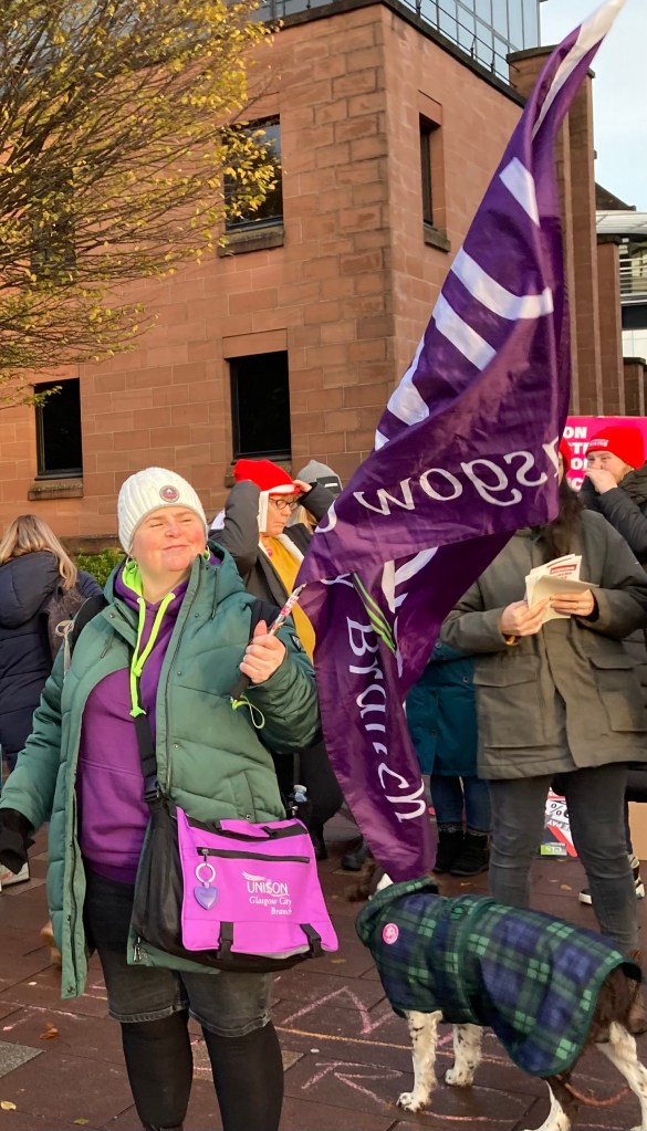 Roz Foyer the General Secretary of the Scottish TUC visited the picket line and addressing the pickets said that although she had lost count of the number of picket lines she had attended today, but this was one of the biggest and most colourful she’d seen yet.