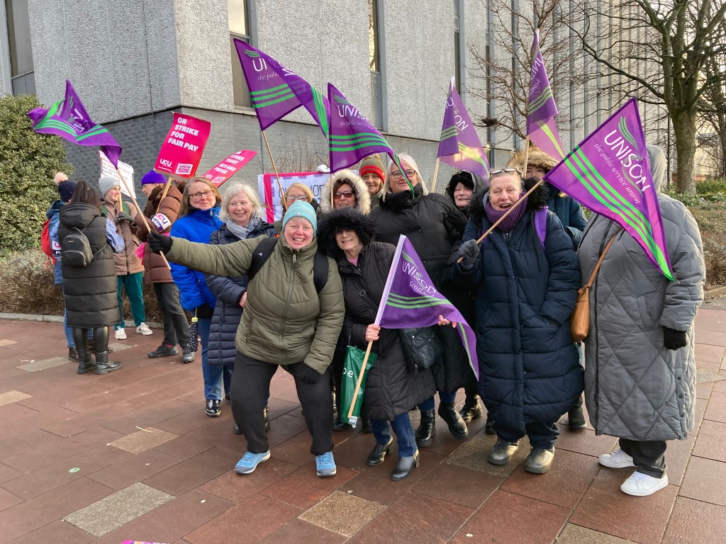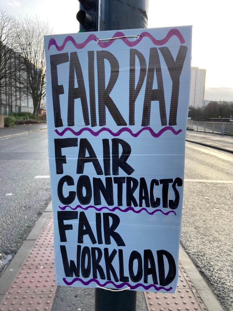 Given that the Unison cleaning staff had been on the picket line since 6.30 this morning (and similarly the two days before), it wasn’t surprising that UCU members arriving only at 8 am were greeted with friendly statements of the nature of ‘Glad you did decide to join the show eventually….’ and enquiries like ‘so how was your breakfast this morning’?