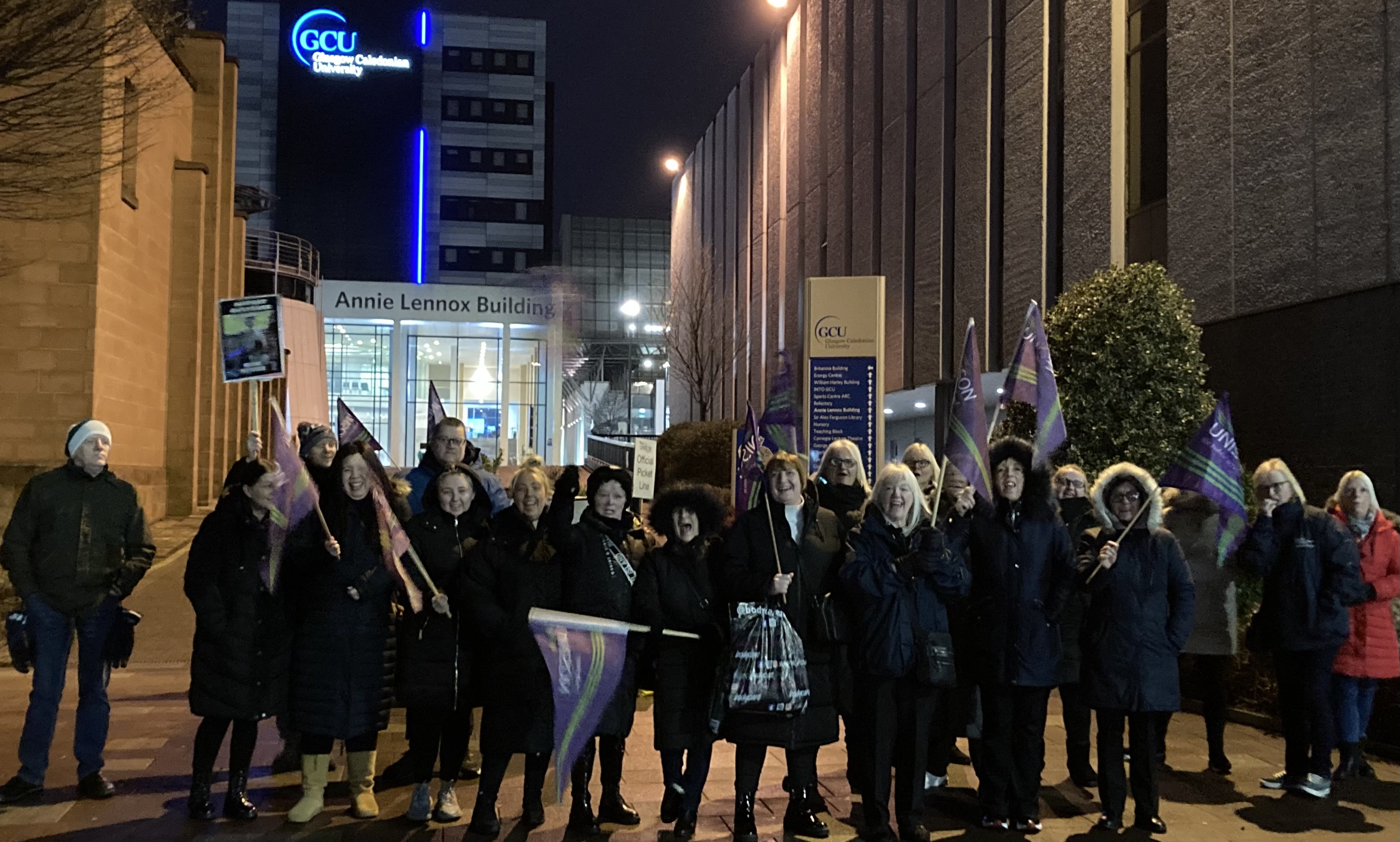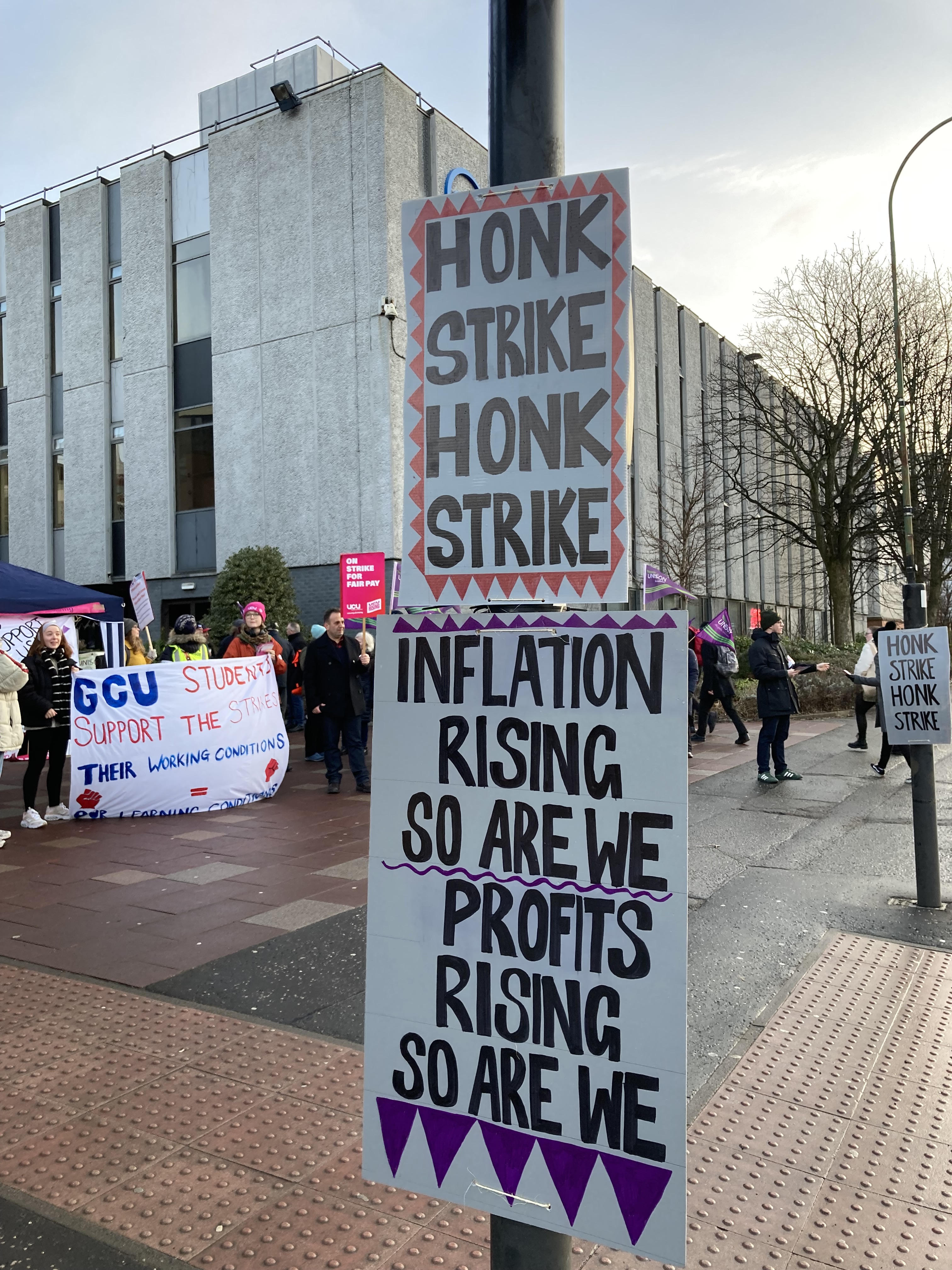 Our general message to management remains – watch this space. We’re not going anywhere soon. As our banner over the large GCU – University for the Common Good Stone at the entrance reads “Our working conditions are your teaching conditions.” We want to make both much better.