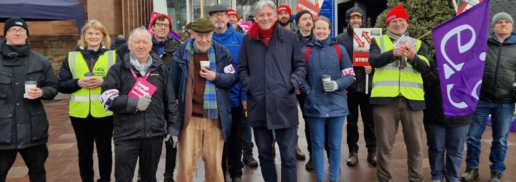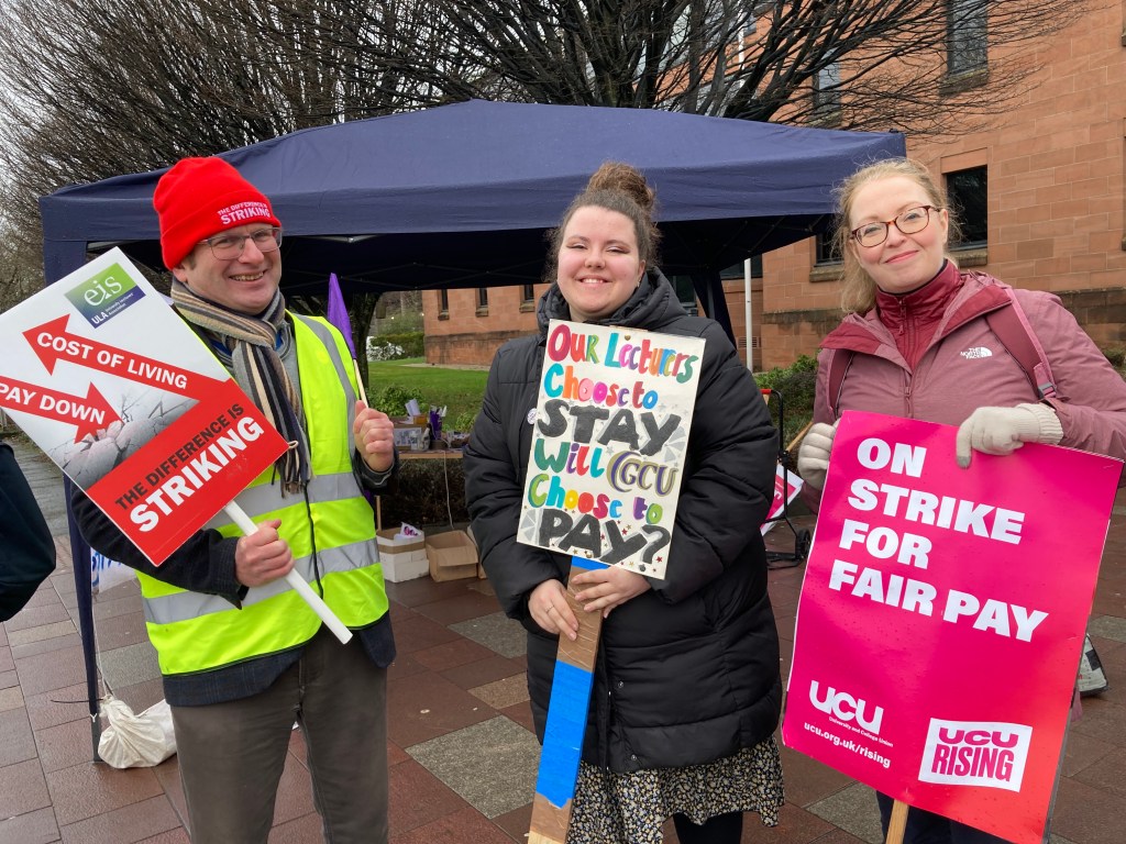 We also had a welcome visit from Richard Leonard MSP – former leader of Scottish Labour and a long time supporter of the unions in Higher Education. He even posed for a photo in the rain. Made of strong stuff these politicians.