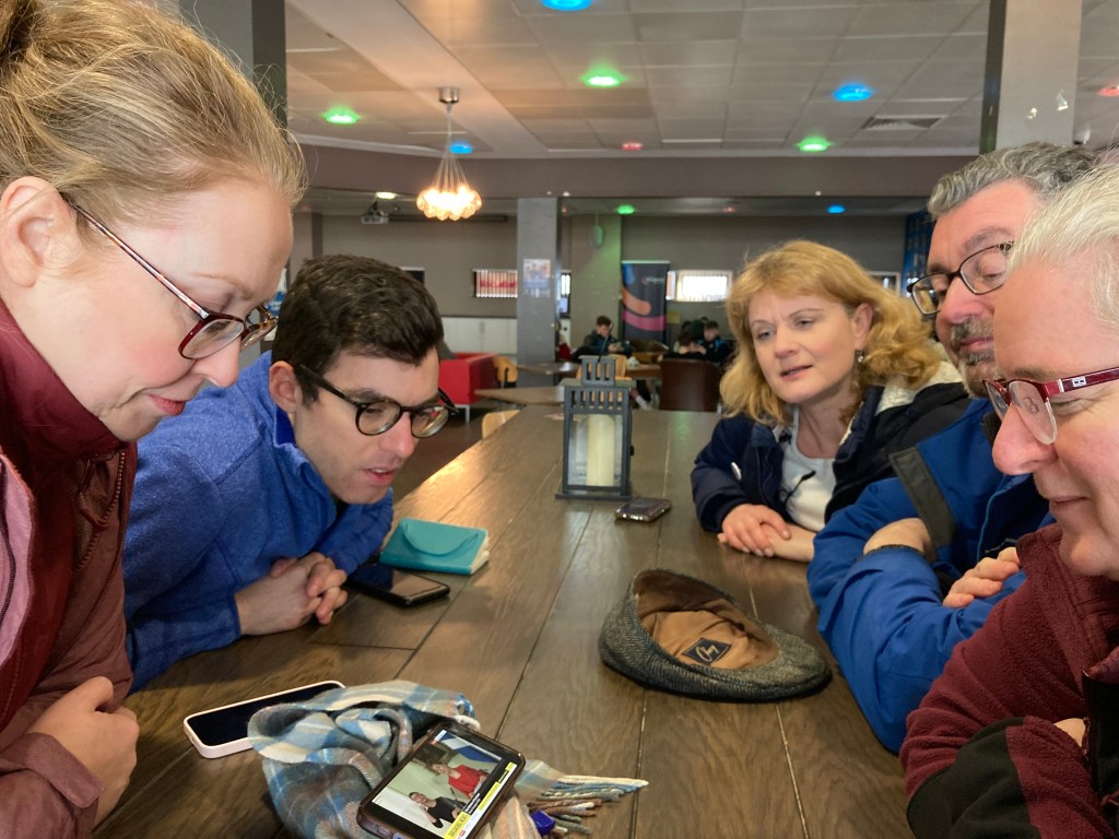 After the picket a few of us defrosted in the Students Association, while we planned future linked activity, including a TeachIn at lunchtime on one of the striking days, a ‘bake-off’ competition (sorry EIS, but UCU think we’ve won that one hands down), and some all union activity around workloads in the nursing department. And just to show not everything’s union focussed, here’s a pic of some of us, listening to the statement from Nicola Sturgeon resigning as First Minister (now there’s a good topic for a teach-out discussion!)