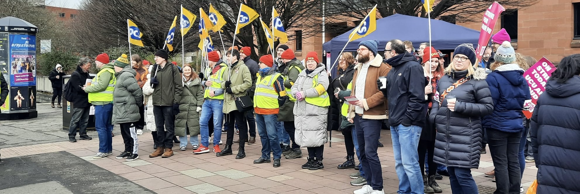 Just a couple of photos from today’s picket – including a visit from striking PCS workers, and Dave Moxham Deputy General Secretary of the STUC. More photos and reports from the picket line tomorrow.