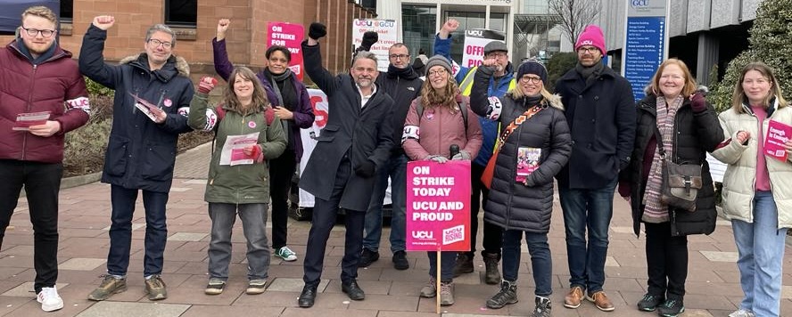 As we were setting up the UCU picket, a member of GCU senior management (as they crossed our picket line), raised an issue with us regarding gender which was that management believed gender issues should be taken seriously and therefore…….. we should take down our poster (see CaledonianUnion passim and our image above) which was encouraging passing cars to express support for our cause, but ……. apparently might be interpreted as sexist.