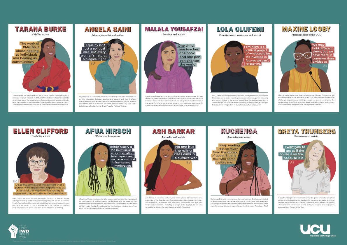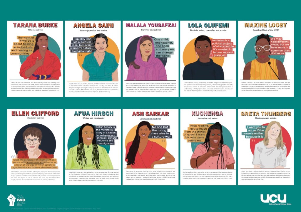 This year’s IWD theme is inspire inclusion and for it UCU have produced a whole range of materials such as this magnificent poster